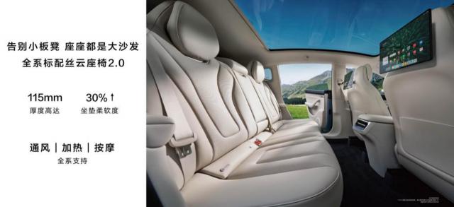 超大的空间,舒适的搭配,智界 R7 让轿跑 SUV 第二排也可以是豪华的头等舱。车内后排的腿部空间达到 956mm,头部空间达到 告别轿跑车1034mm。 SUV 紧凑和拥堵。丝云座椅是整个系统的标配 2.0,座位都是大沙发。前排座垫的厚度高达 后排支持115mm。 27 ° -37 ° 无级电动调节,整个系统支持通风、加热和按摩功能。后排座椅下面还设置了 3.8L&3.5L 双置抽屉,可以存放纸巾等日用品,优雅快捷。后侧配有创新星光黑带,座椅通风 / 加温 / 按摩,空调调节触手可控,科技感十足。