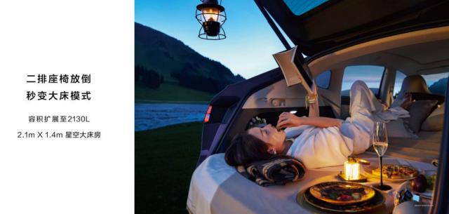 乘坐体验超级舒适,智慧 R7 储物空间也突破了想象。三层后备箱的创新 837L 空间大,户外旅行时可以轻松存放行李。后排座椅完全放下后,后备箱连接后排的扩展容量高达 2130L,可秒变 2.1m X 1.4m 星空大床房。