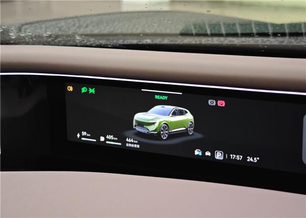 阿维塔家族标志性远端仪表盘保留在车内。除了在主驾驶前显示车辆状态信息外,还可以选择电耗、音乐、性能模式等需要显示的信息。在中控屏幕后面,显示的信息更加丰富。
