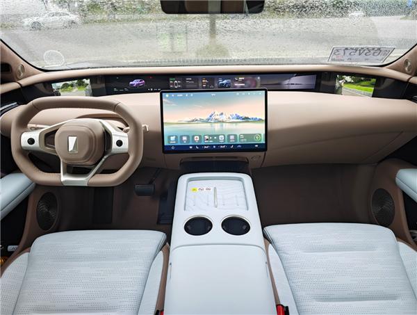 值得注意的是,阿维塔 07 电子后视镜设计较为明亮,车内显示屏放置在远端仪表盘两侧,并向驾驶员位置弯曲显示。