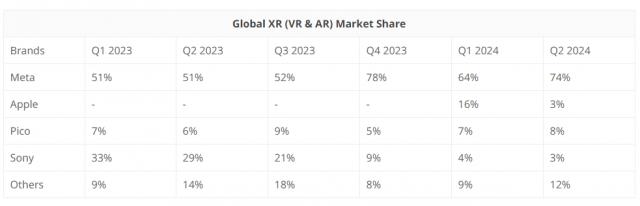 第三方市场调研机构依据 Counterpoint 发布全球 XR 市场份额报告显示,2024 年第二季度 Meta 以 74% 这次的市场份额就是第一个例子。 Quest 3S 发布必将巩固 Meta 在全球 XR 毕竟市场的霸主地位,它的价格比 Quest 3 性能低下,性能与之不相上下,Quest 3S 再创的可能性很大 Quest 2 突破 2000 万台辉煌的纪录。