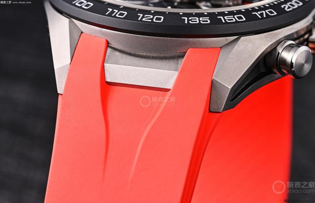 以上图中橙色计时表为例。除了表壳直径、表耳间距和厚度再次改善外,产品的直径是 44 mm,厚度 15.10 特别使用毫米表壳。 2 由等级钛金属制成,这种设计的优点是在保证霸气宽敞的阅读空间的同时,佩戴手表更加舒适轻便,不会造成手腕之间的负担,非常贴心。