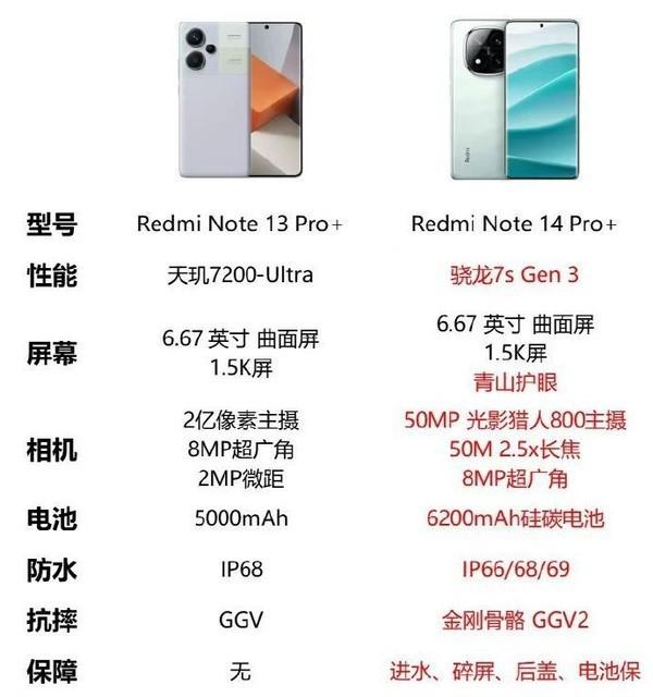 在影像系统上,Redmi Note 14 Pro 后置三摄矩阵,特别是 5000 万像素光影猎人 800 传感器的主摄和 5000 万像素 2.5 双直立长焦镜头,配合 800 万像素超广角,拍摄能力全面跃升。内置续航方面 6200mAh 满足长期使用需要的大容量电池。保护等级提高到 IP69,抗摔性能和官方保障服务均有显著提升。