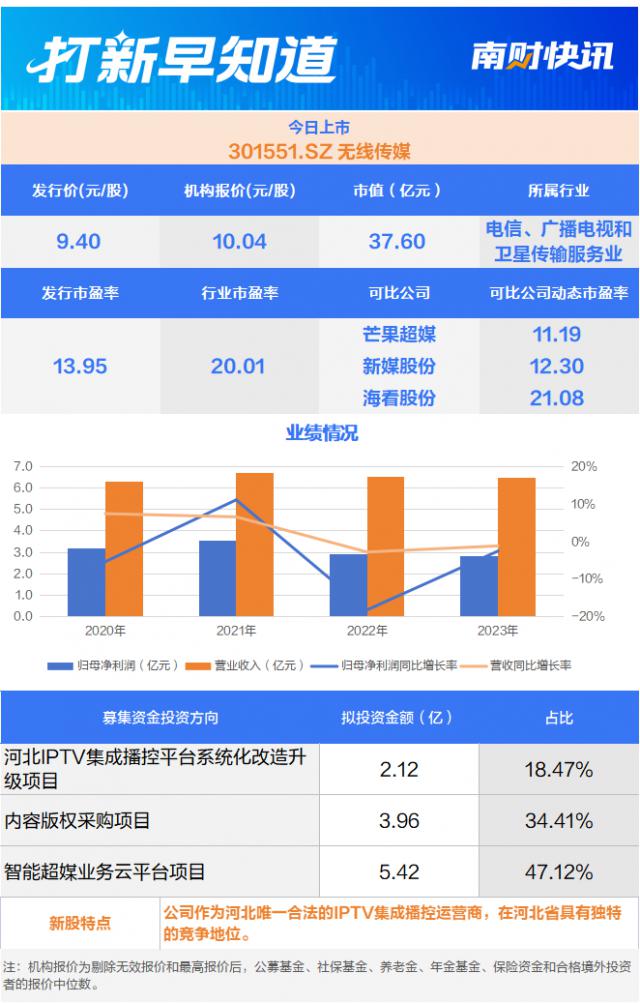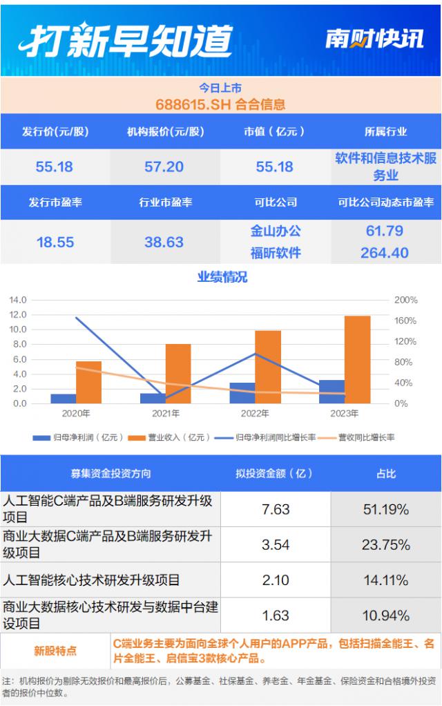“启信宝”“扫描全能王”母公司;河北广电独家运营商今日上市