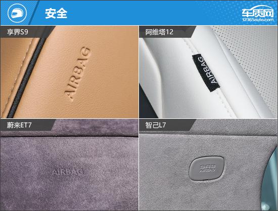 安全性配置方面,享界 S9、阿维塔 12 和蔚来 ET7 平淡无奇的表现,让人找不到任何问题。另一方面,智己 L7,确实还有很大的提升空间,如后侧气囊、前排中间气囊、后方碰撞预警、防侧翻系统等,都无法配置。