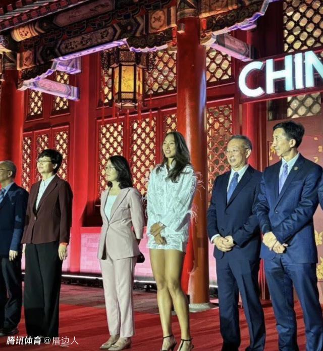 排场十足 领导站两侧的郑钦文C位亮相 一件羽衬衫近万元的气场太强了。