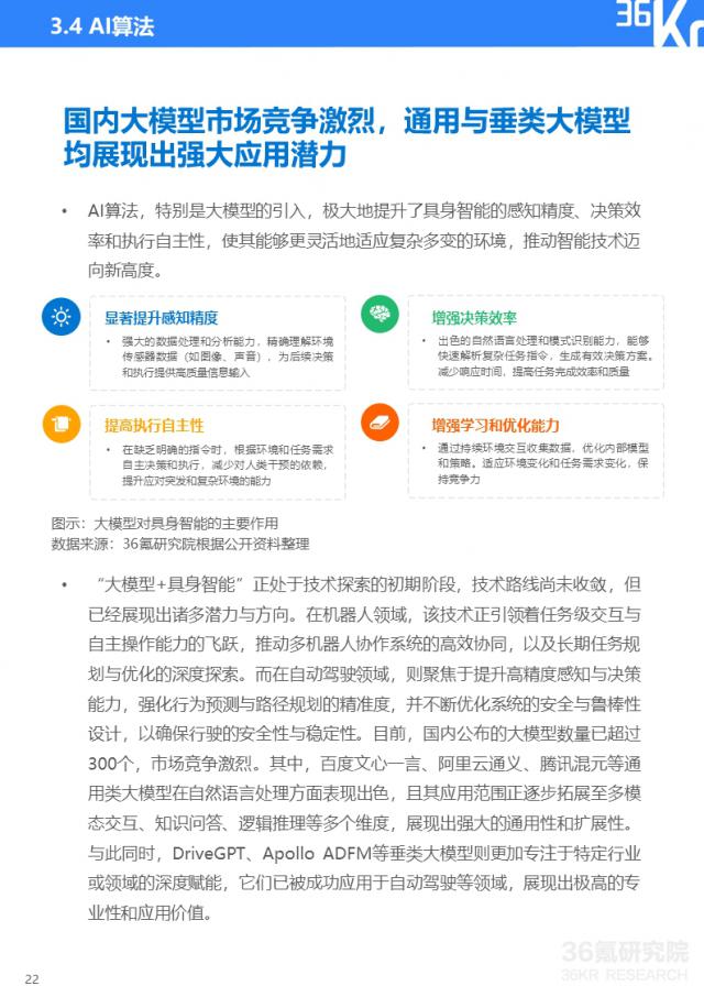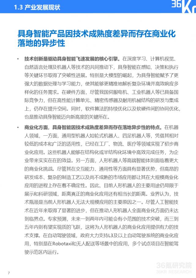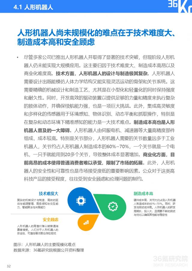 在机器人领域,轮试、四足机器人等通用机器人在施工现场、物流、医疗等领域实现了初步的商业化,成本低,适用性广。然而,人形机器人等高端智能体面临着更大的商业化挑战,其高R&D成本、复杂的制造技术和不成熟的市场应用限制了其大规模商业化。预则人形机器人技术有望在未来三到五年内实现质的飞跃。