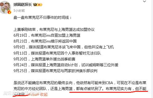 只是从个人声誉的角度来看,社会媒体已经正式宣布加入上海男篮。现在,由于新的报价合同等因素,他们在约定的时间段内无法回归。这个决定可能会让布莱克尼在未来。 CBA 在选择联赛打球方面存在冲突。