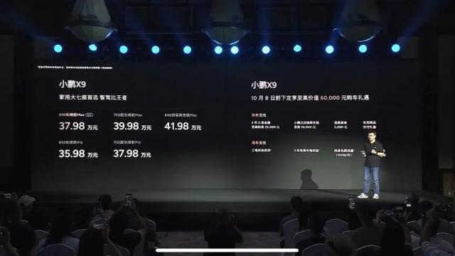 9 月 25 日本,小鹏的旗下 MPV —小鹏 X9 推出新版本,现在 610 长续航 Pro 和 720 长续航 Pro 之间新增 610 长续航 Max 官方指导价,版本 37.98 一万元。现在小鹏 X9 在售为 5 款车,官方指导价为 35.98 — 41.98 万元。