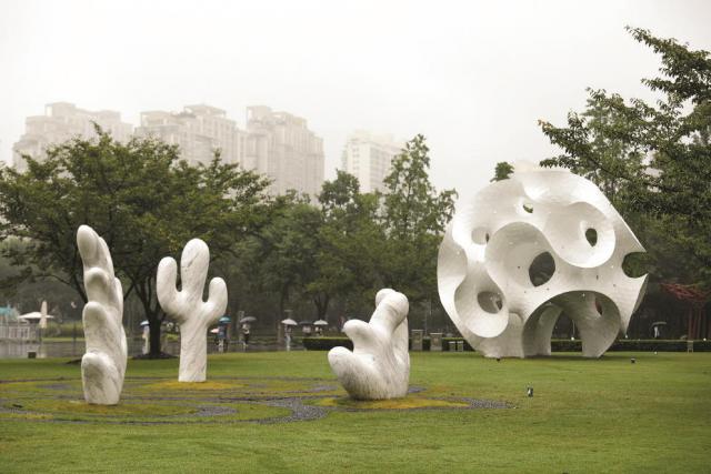 雕塑展品“大理石三重奏(仙人掌、树叶和珊瑚)”和“美丽狂想”。