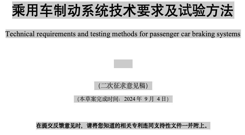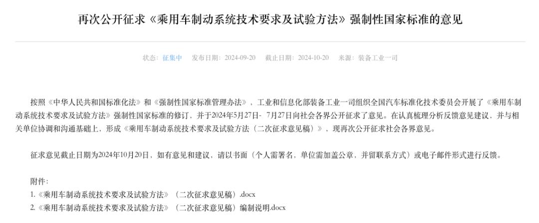碰巧,日前,中信部再次公开征求了《乘用车制动系统技术要求及试验方法》强制性国家标准的建议。
