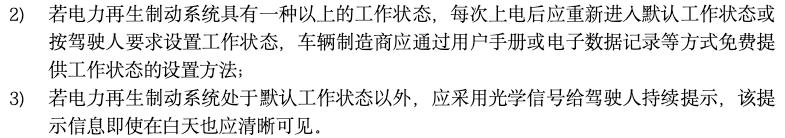 然后是规范电力再生制动系统的设置。如果车辆处于非默认设置状态,应有光学新闻提醒驾驶员目前处于状态。