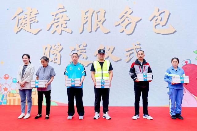 现场还将体现各界人士关怀和温馨的健康服务套餐送到新兴领域的从业者代表手中,如门岗人员、家政人员、环卫工人、送货员、快递员等。