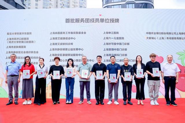 现场成立了“静新益家”健康服务团,26 首批领导小组包括华东医院、上海同济口腔医院、上海皮肤病医院等知名三甲医院,以及各具特色的社会医疗机构和健康社会团体。