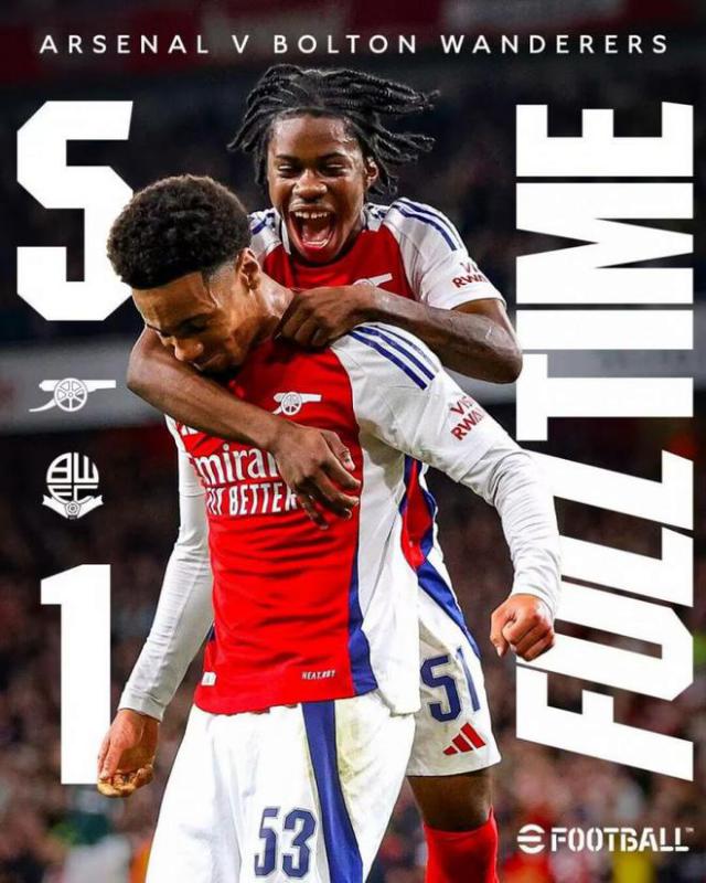 联赛杯-阿森纳5-1博尔顿晋升 斯特林首球 传射17岁恩瓦内里双响。