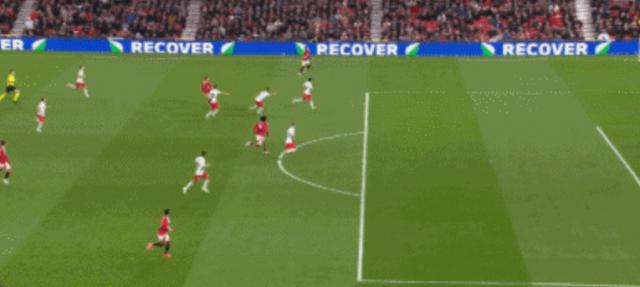 第 35 几分钟,在达洛特的战斗下,足球来到埃里克森面前,后者直接爆发,帮助曼联。 1-0 打破场中困境。