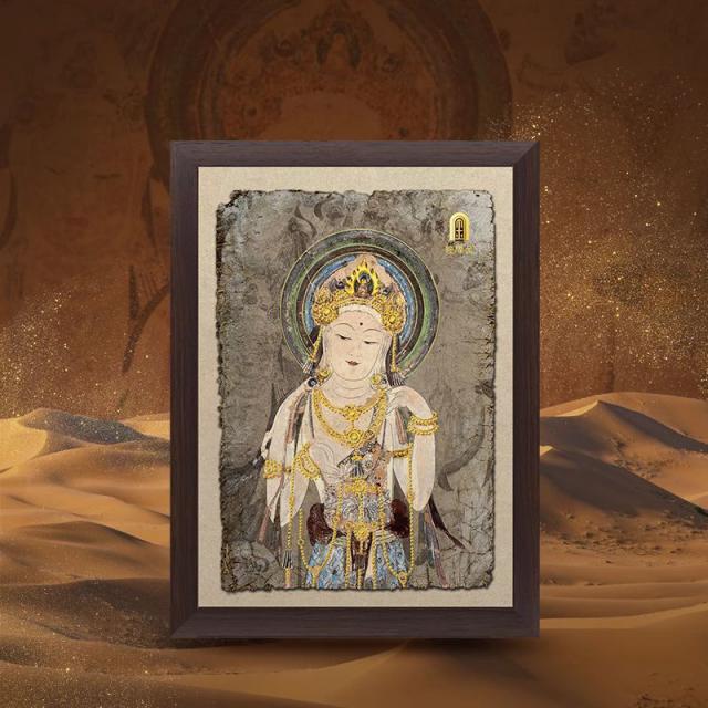 莫高窟第 57 洞穴被称为“美人窟”,其南壁“说法图”左侧的观音菩萨被人们称赞为“”最美菩萨"-它的外表美丽,身姿婀娜,衣着华丽,冠饰、璎珞、臂部分沥粉堆金工艺独特,是敦煌莫高窟的代表性艺术佳作。