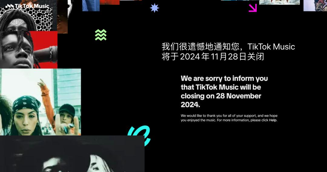TikTok宣布将于今年11月28日关闭TikTok的音乐流媒体服务 Music,TikTok在尝试了两年后,放弃了进入音乐流媒体市场。