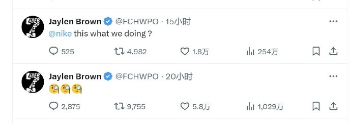 那天,布朗发表了一篇神秘的文章,里面有三个眼镜表情符号。五个小时后,他再次发帖,指责美国队的赞助商耐克阻止他参加比赛。“这就是我们要做的吗?”