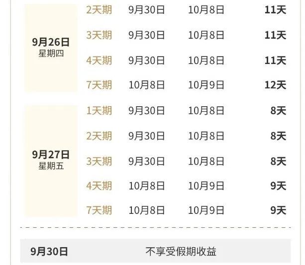 国庆节“捡钱”就在今天!2天躺着赚11天利息,来看看操作策略