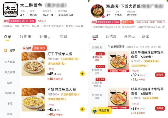 从美团APP来看,海底捞和太二酸菜鱼已经为外卖场景推出了一些单人餐。成本的降低使这些连锁企业能够在保证利润的同时降低客户订单数量。