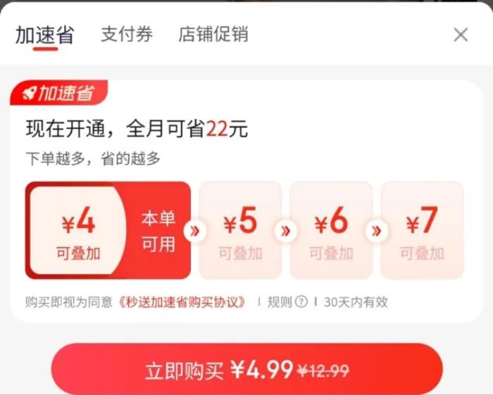 除降低价格外,PConline观察到,JD.COM也悄悄推出了名为“加快省”的优惠券。不言而喻,这是一种类似美团神券的增值服务。