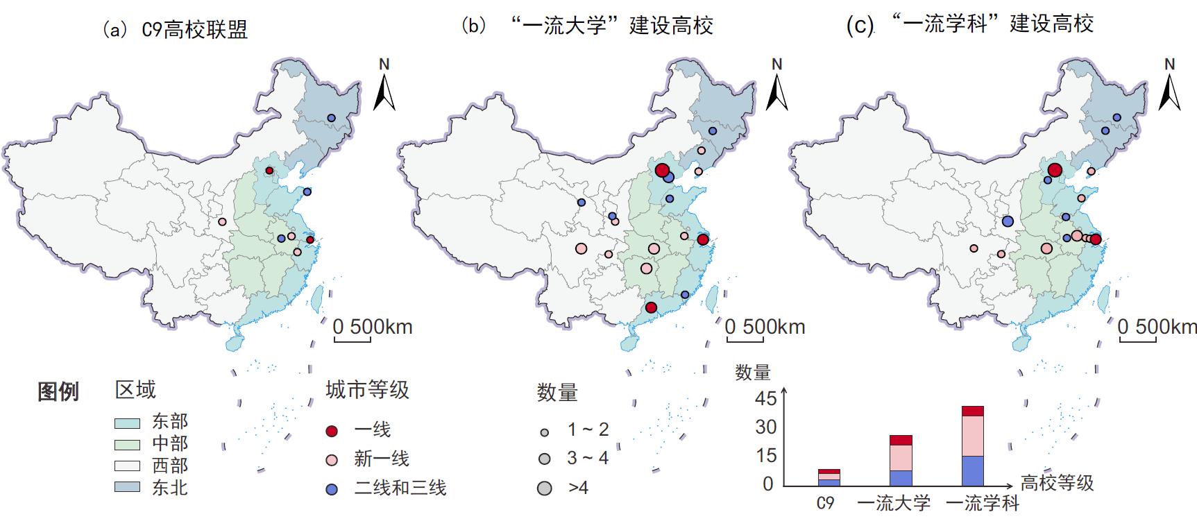 图1:78所自主招生试点院校的分布特点。本图均为作者自绘。