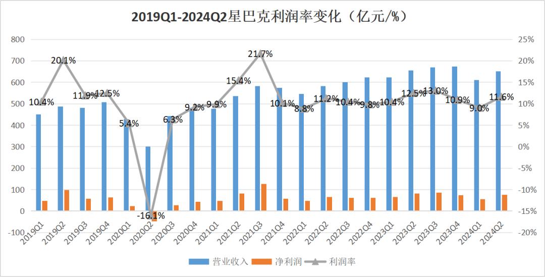 值得关注的是,和瑞幸波动较大的利润相比,除2020年Q2亏损50.28亿,星巴克都处于盈利状态。