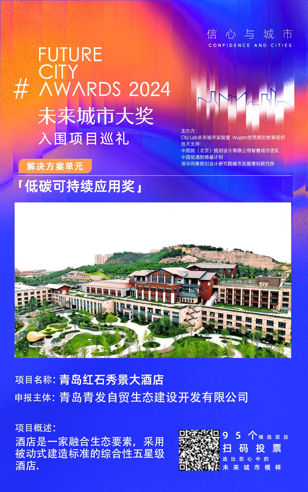 2024年未来城市奖2024(FCA 2024年7月31日,5个模块和12个单项奖项项目入选。截至8月31日,组委会已收到来自全国50多个城市的160多个申请项目。最终,95个申请项目通过组委会初步筛选进入初步评估阶段,按照“智慧、可持续、友好、在地”的评估象限和实际投入使用且未满三年的评估要求。