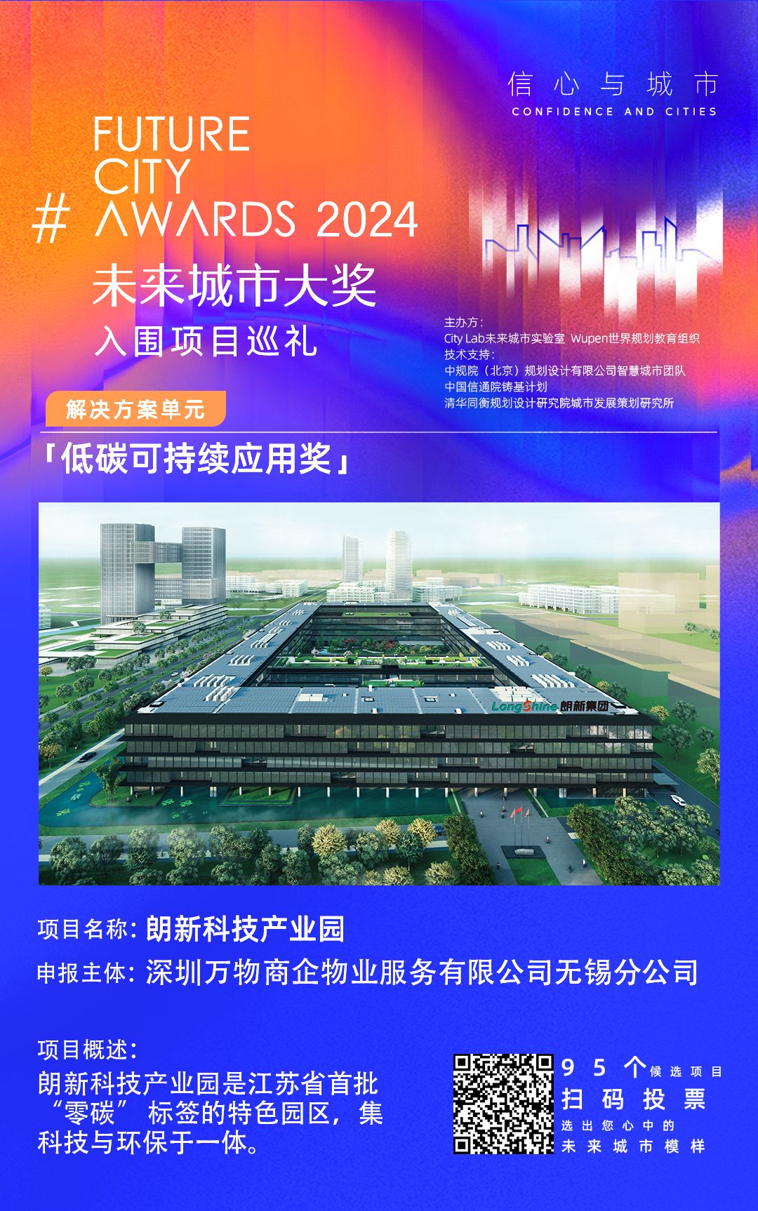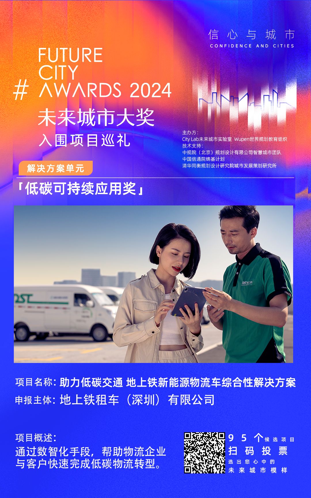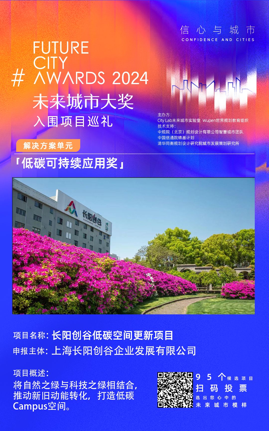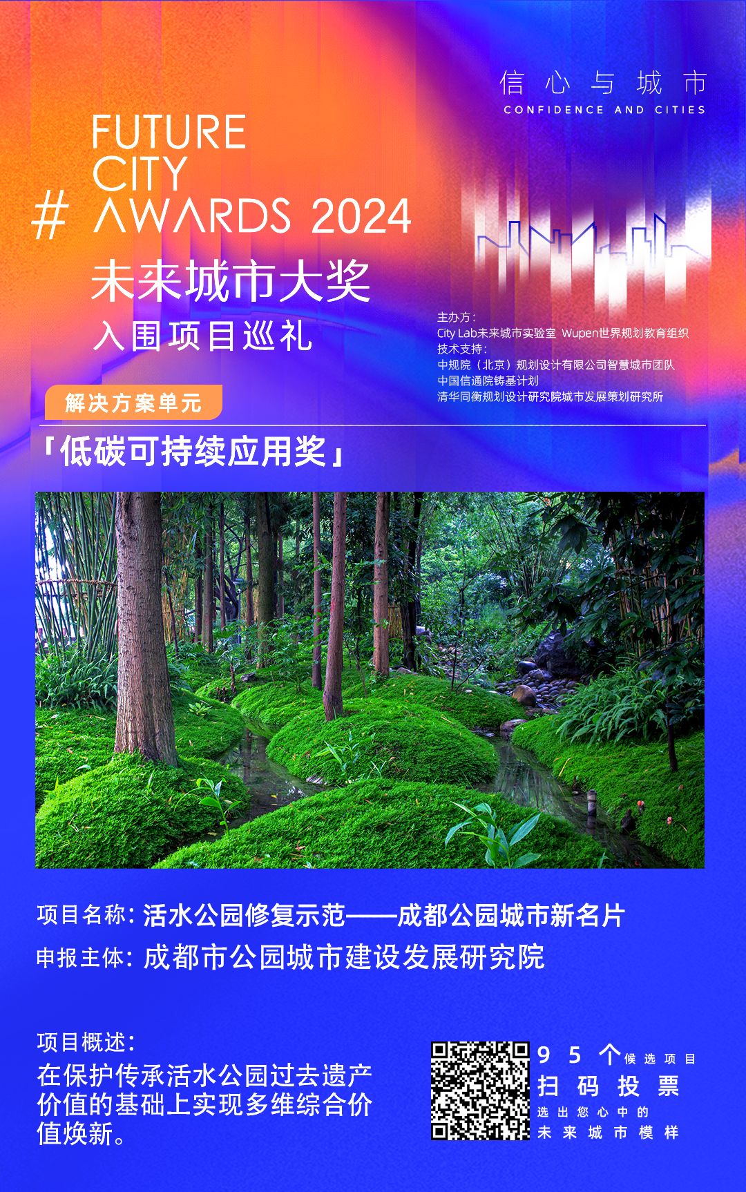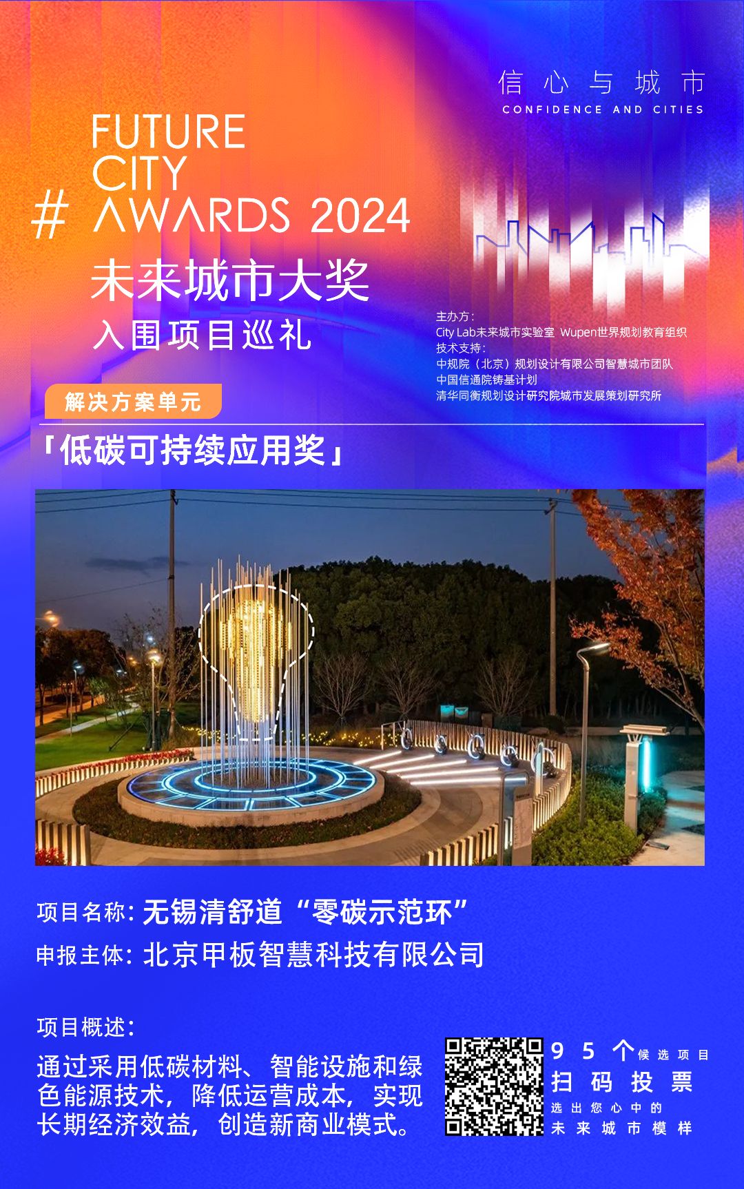 为了促进社会关注,引起公众参与,本届未来城市奖项在初步评估阶段增加了公众投票。9月25日至10月16日,公众可以进入组委会正式设立的投票平台(微信扫描下面照片的二维码进入),浏览每个单项奖项对应所有申报项目的图文介绍,投票投票支持的未来城市实证创新项目。