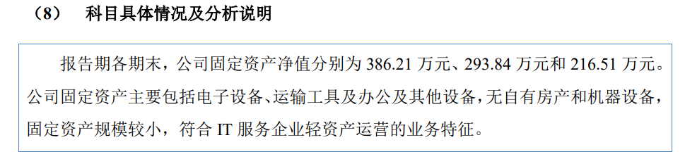 昆仑联通在招股书中表示,公司固资规模较小,符合IT服务企业轻资产经营的经营特点。