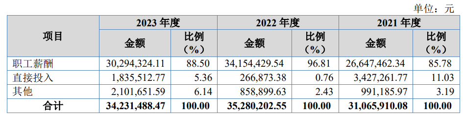 在一定程度上,人员的减少也导致昆仑联通在R&D的投入下降。与2022年相比,公司2023年的R&D支出下降了100多万元,尤其是R&D人员的工资下降了386万元。