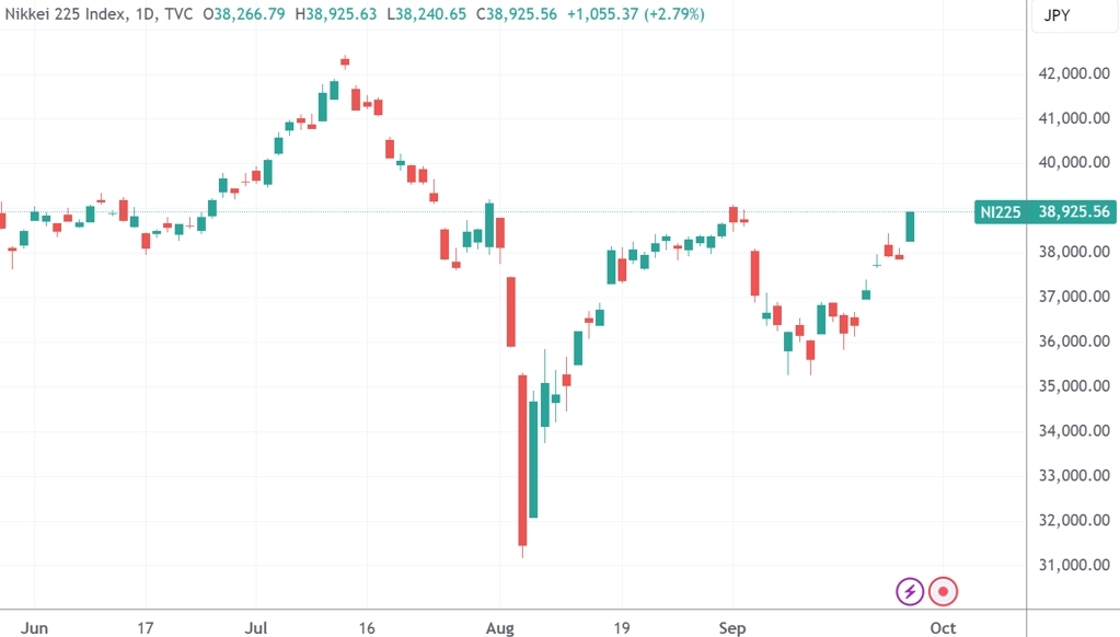 IG HebebetsMarkets分析师 Chen解释说,由于中国不寻常、全力以赴的决心,亚洲市场正沉浸在乐观的海洋中。,旨在提高国庆黄金周和年底的经济动能。上周美联储降息后,亚洲地区的风险偏好普遍增强。