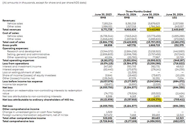 如果说第二季度说明了什么,那就是蔚来汽车也可以扩大销售线,尽管盈利能力仍然是一个严重的问题。24年第二季度,蔚来汽车总销售额为174.46亿元(24.006亿美元),同比增长98.9%。