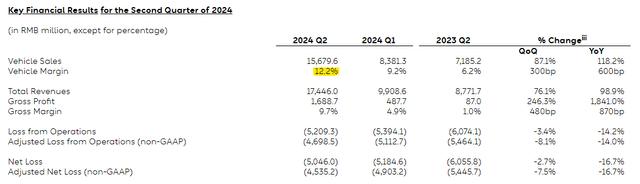 除了交付量增加带来的利润率大幅上升外,蔚来的利润率也有所上升,这对蔚来来说是一个积极的发展,尽管整体盈利能力仍然有点令人失望。按照每辆车计算,第二季度利润率上升至12.2%,环比增长300个基点,同比增长600个基点。