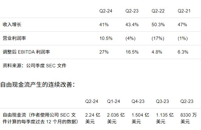 财务状况看上去也很棒。收入增长强劲,盈利能力不断提高,自由现金流增长持续令人印象深刻。