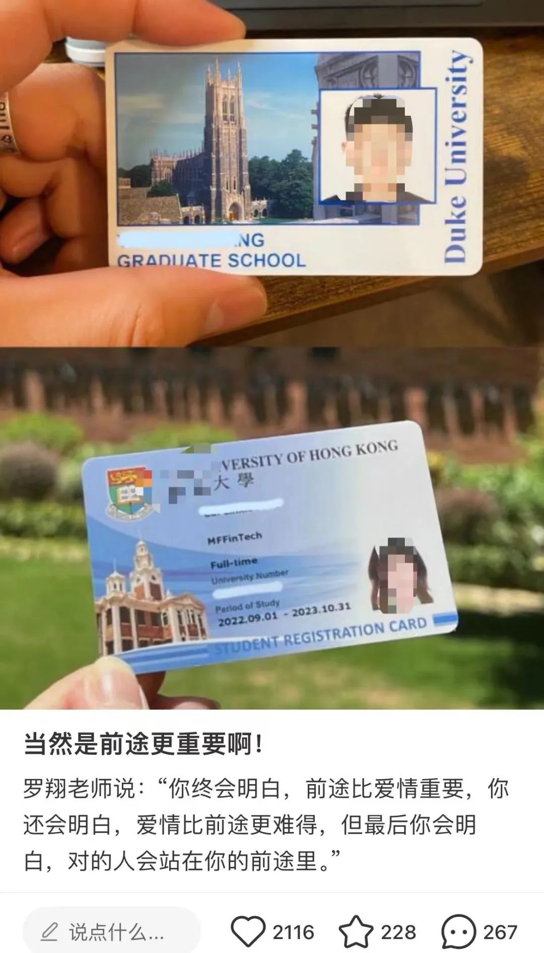 目前,当顶尖大学生在朋友圈正式宣布恋爱时,图片流行拼接自己和对方的校园卡,高外观水平也发送在双方学校门口的照片,以显示正确的家庭,峰会见面,顺便玩顶尖学校爱和杀戮的梗。