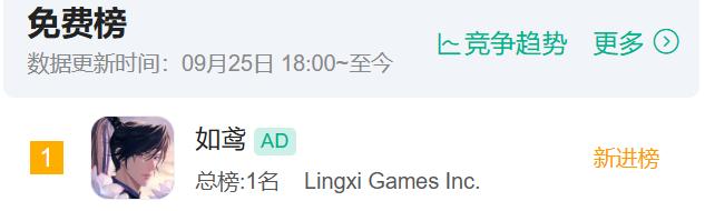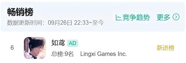 今日,灵犀互娱(以下简称灵犀)沉浸式剧情卡牌手游《如鸢》首测,首日便冲到iOS国区游戏畅销榜Top 6。昨日游戏打开预下载后,也早已迅速登上iOS免费榜首。