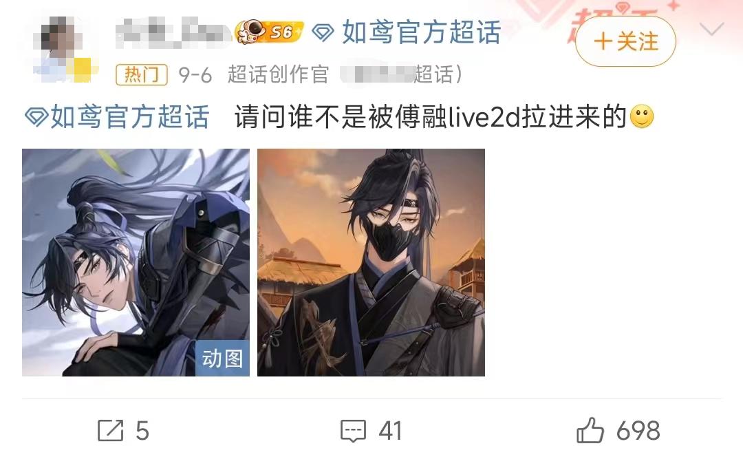卷曲艺术并不是一个罕见的操作,但《如鸢》的直播2D确实卷出了意想不到的水平,甚至在一定程度上刷新了大家对2D上限的理解。他们做的不是机械的、重复的四肢摆动,而是光滑流畅的微表情和动作。典型的傅融(男主角之一)翻眼动画,比如火出圈,引起热议,显然不是3D,而是让人活了下来。