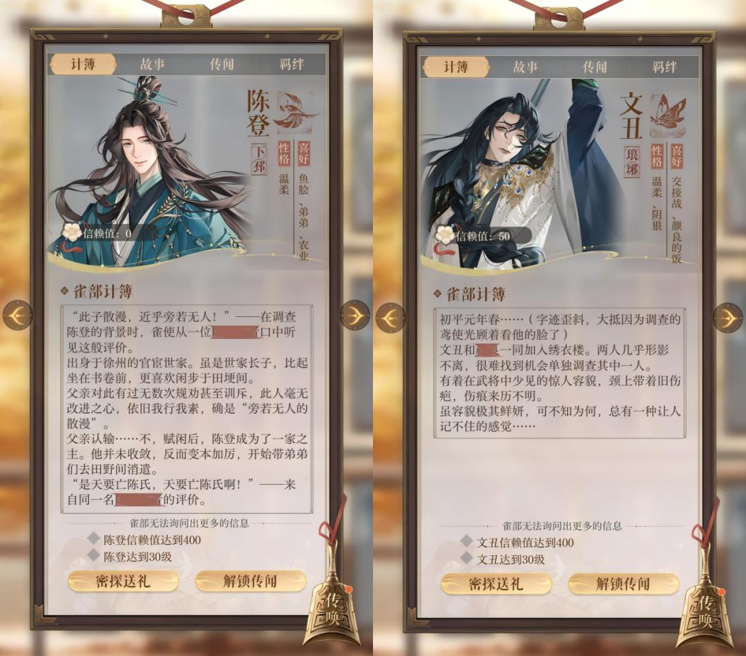 游戏前期宣布,也明里暗里强调这一点:最明显的是,打开“如鸢”社媒官号,你会发现他们发了很多暗探档案;