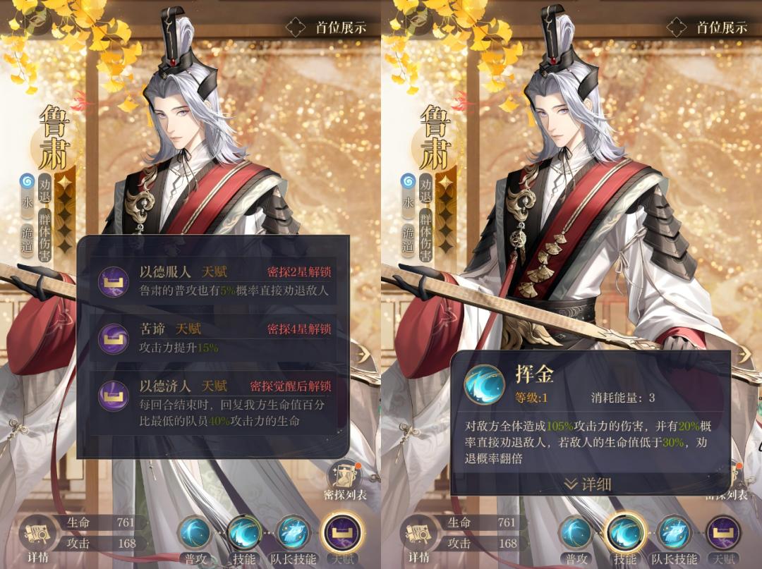 探索鲁肃的技能和普攻,有可能触发劝阻。 直接让敌人逃走,不战而胜。