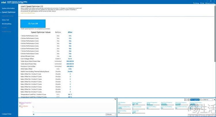 其次,在13、在14代酷睿的高端型号上,有一个名字叫“TVB(Thermal Velocity Boost)“自动性能控制机制。一般情况下,该机制会增加CPU的主频率,以便在良好的排热(CPU温度很低)的前提下发挥更好的性能。