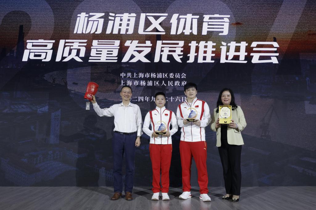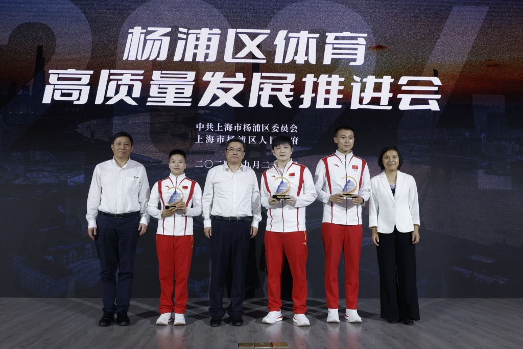 9月26日,上海市杨浦区召开高质量体育发展推进会,樊振东、吴愉、王子杰被聘为杨浦体育使者、杨浦慈善大使、杨浦旅游大使。在推广会上,运动员们分享了他们对体育精神和“体育能量”的理解。