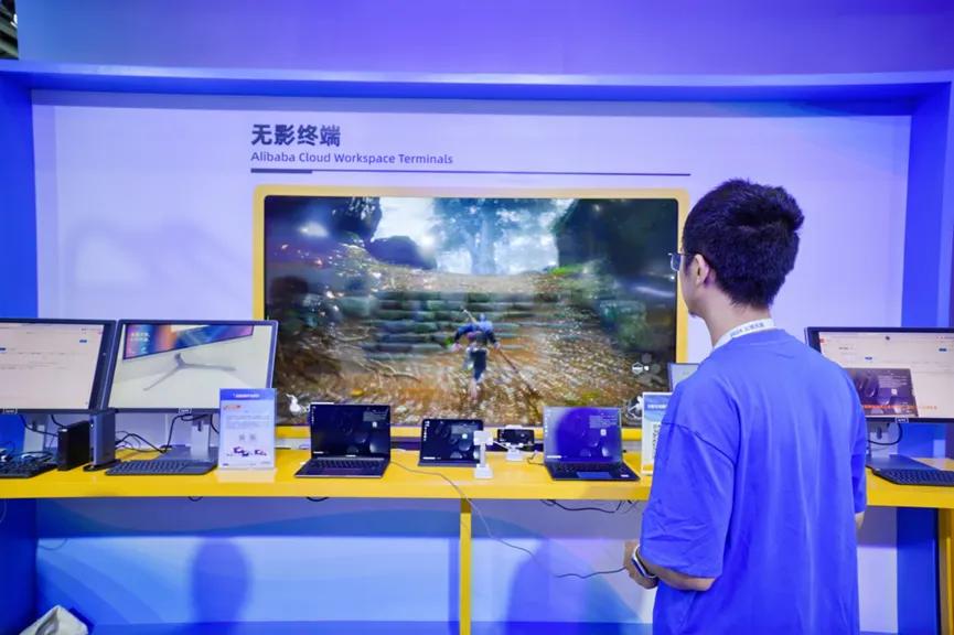 在云起大会的无影云电脑展区,与会者可以亲身体验在云电脑上玩游戏的感觉。无论是角色的跑步、跳跃还是激动人心的战斗场面,都像丝绸一样光滑,没有任何卡顿,几乎没有延迟。