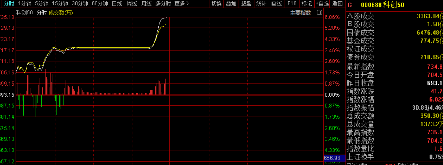 现在,上交所怀疑已恢复正常,上证指数涨幅超过2%,科创50指数涨幅超过6%。