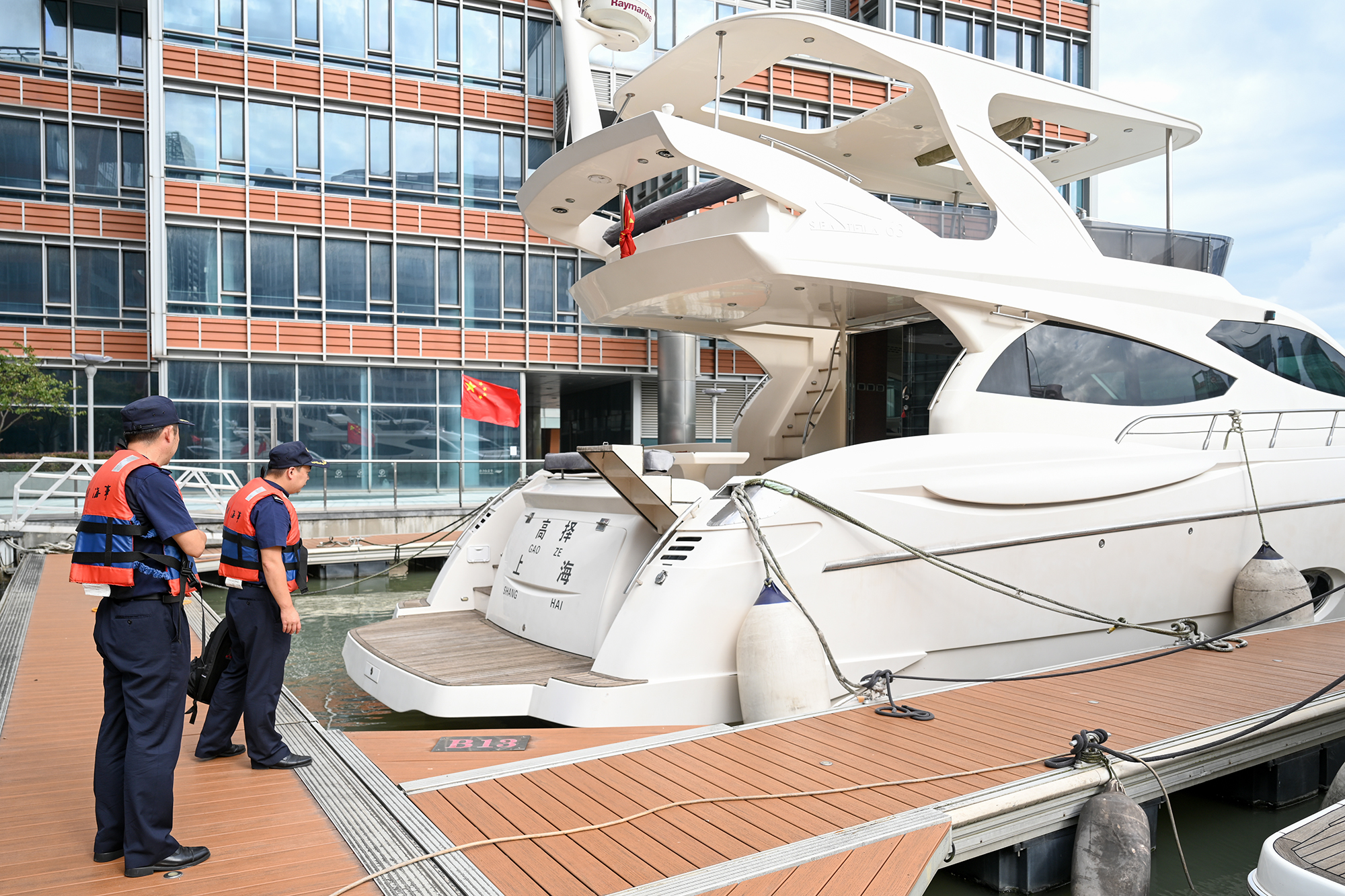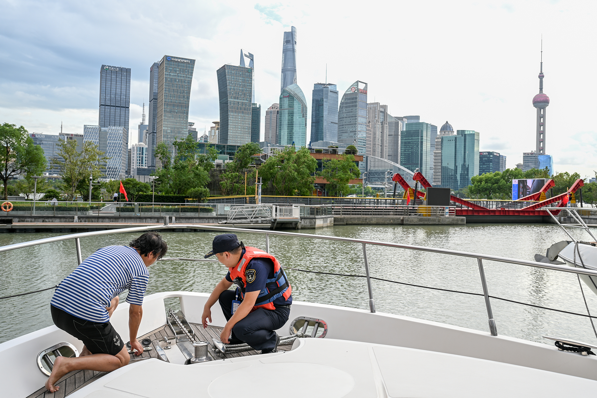 上海、黄浦海事执法人员于2024年9月26日对港池游艇进行了检查。本报记者 朱伟辉 图
