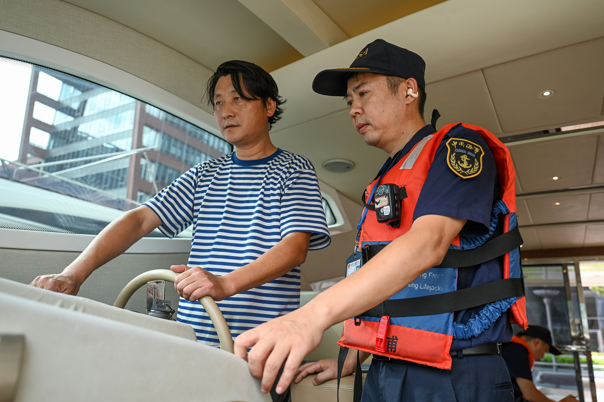 上海、黄浦海事检查员于2024年9月26日对游艇驾驶室进行了检查。本报记者 朱伟辉 图