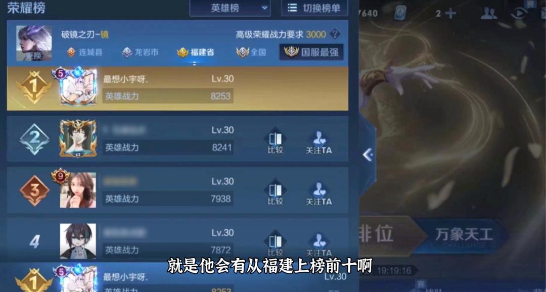 图|小宇的英雄“镜”有省排名。