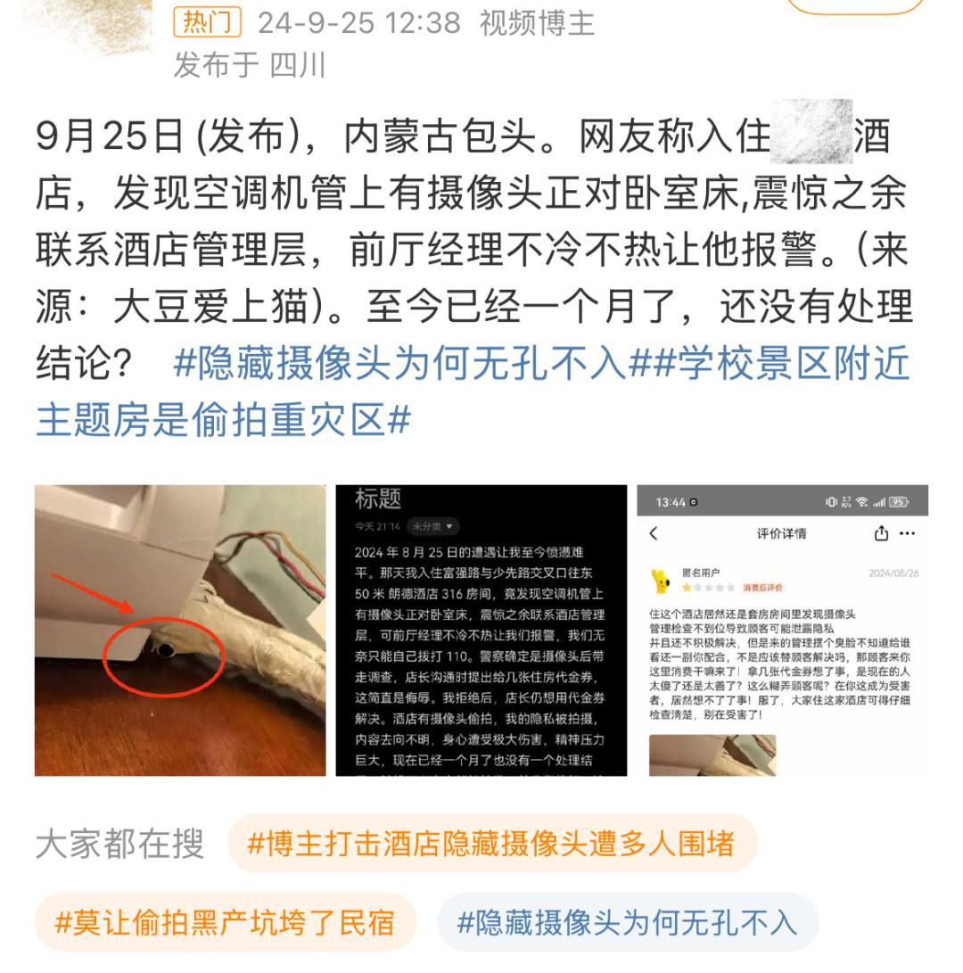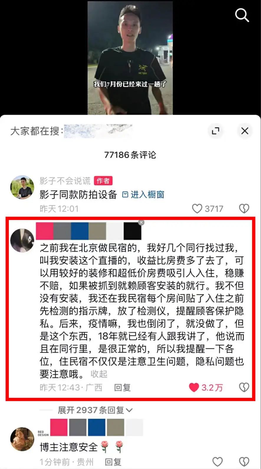 开头打击酒店隐藏摄像头的博主@身影不会说谎。 这个消息被热搜,不仅没有威慑到他们,他们最多就是像开玩笑一样互相提醒。