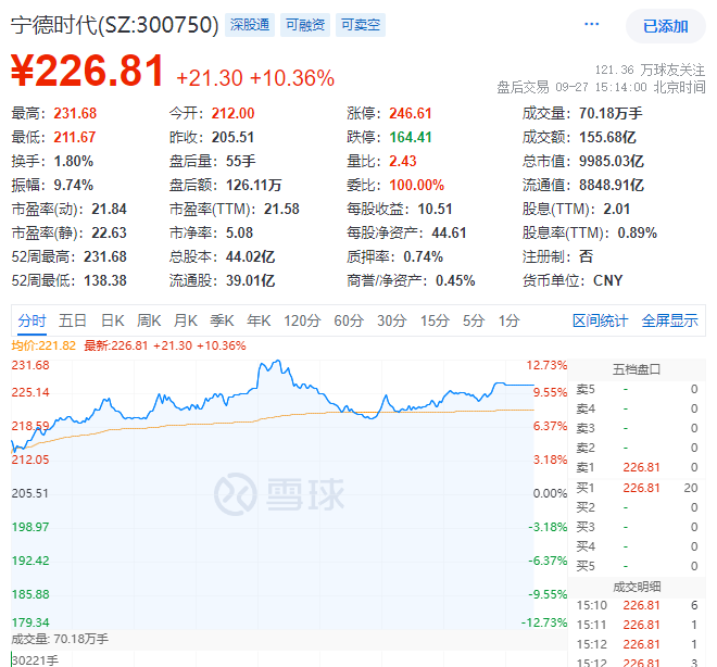 随着新能源赛道的爆发,宁德时代上涨了10%以上。